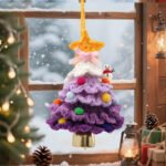 Dark purple gradient Christmas tree with small bells Crochet Kit, DIY Crochet Starter Kit