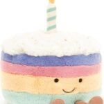 Jellycat Amuseables Rainbow Birthday Cake Stuffed Toy, Medium 6 inches – Dessert Plush – Birthday Gift
