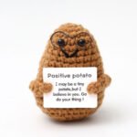 Dark brown potato with glasses and flat mouth Positive Crochet Kit, DIY Crochet Starter Kit
